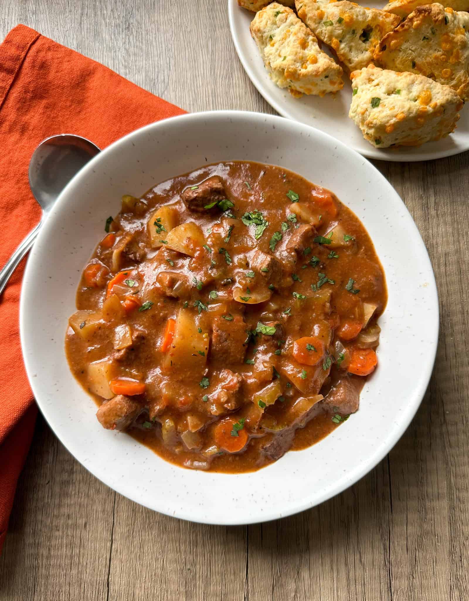 Perfect for cozy nights: it’s filling, freezer-friendly, and even better when served with warm chive and cheddar biscuits on the side.